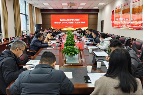 党委理论学习中心组在石油科技大楼B113会议室开展集中学习扩大会,中心组成员、各系(中心、室)主任、党支部书记和全体科级干部参加。