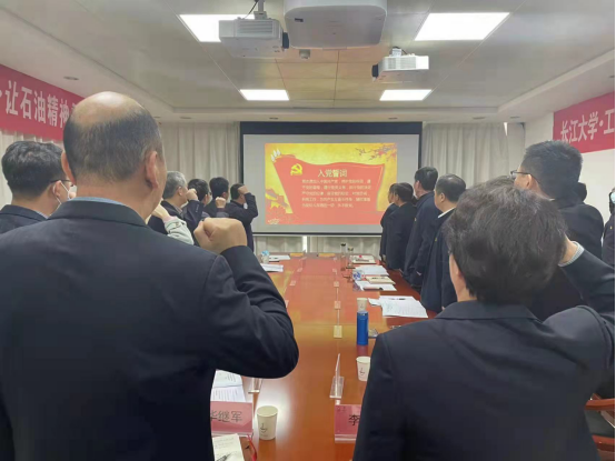 油气田开发工程系教工党支部书记王长权、油气井工程系教工党支部书记吴惠梅、研究生第一党支部书记史永波和江汉工程院储层改造党支部书记高东伟签订联建共创协议书,并依次作表态发言。