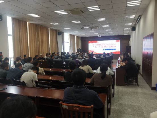 在石油科技大楼B113会议室召开学习贯彻习近平总书记“七一”重要讲话专题辅导报告会,学院全体教职工现场聆听报告,党委书记张光明主持报告会。