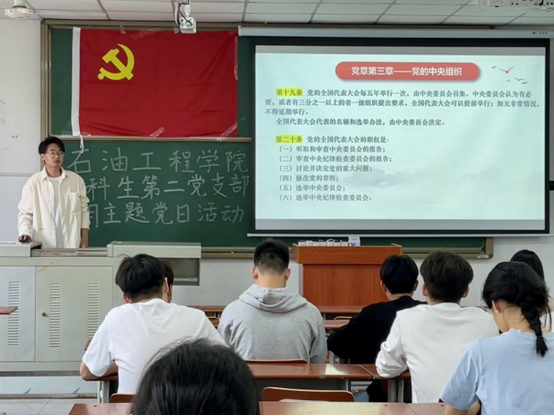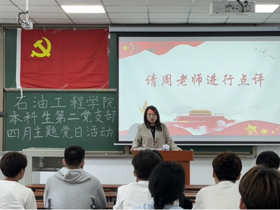 本科生第二党支部于武教A-106教室开展了四月主题党日活动。本次活动由于泽同志主持,支部书记周晓峰和全体党员同志参加。