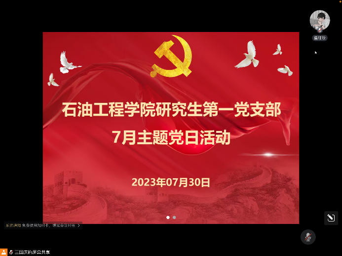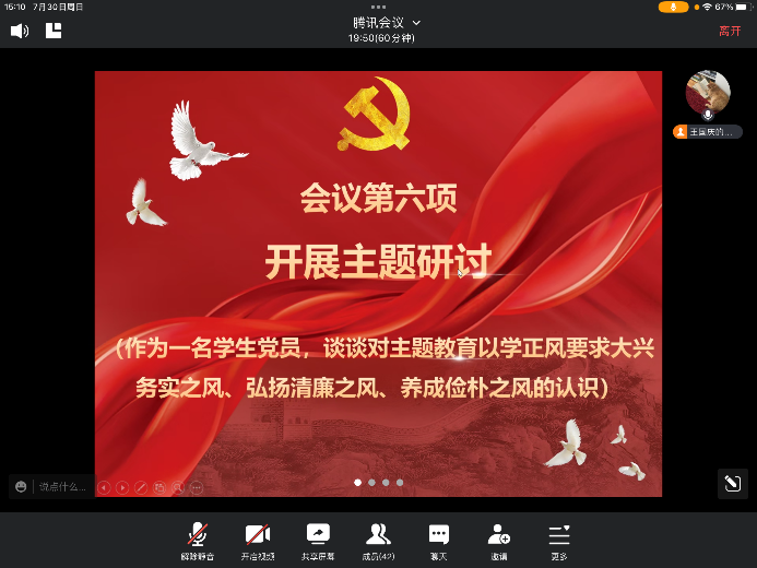 研究生第一党支部于腾讯会议召开七月主题党日活动。本次会议由王国庆同志主持,支部书记史永波及支部党员参会。