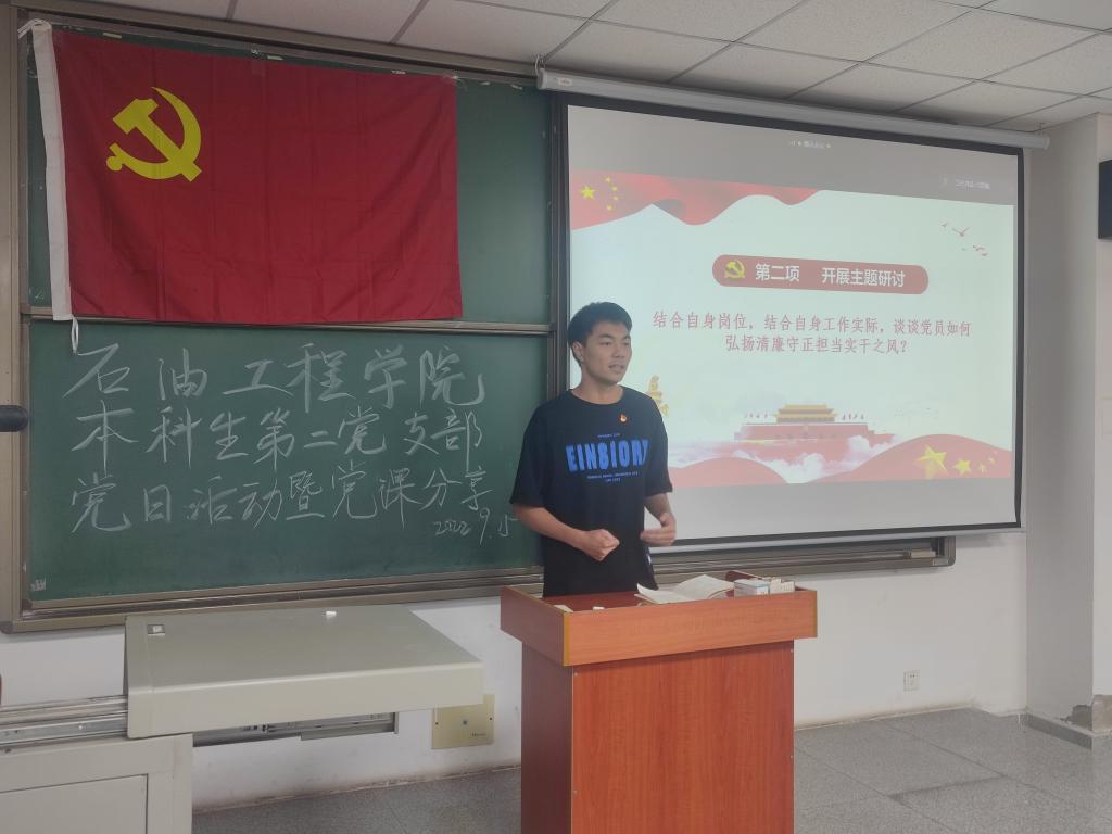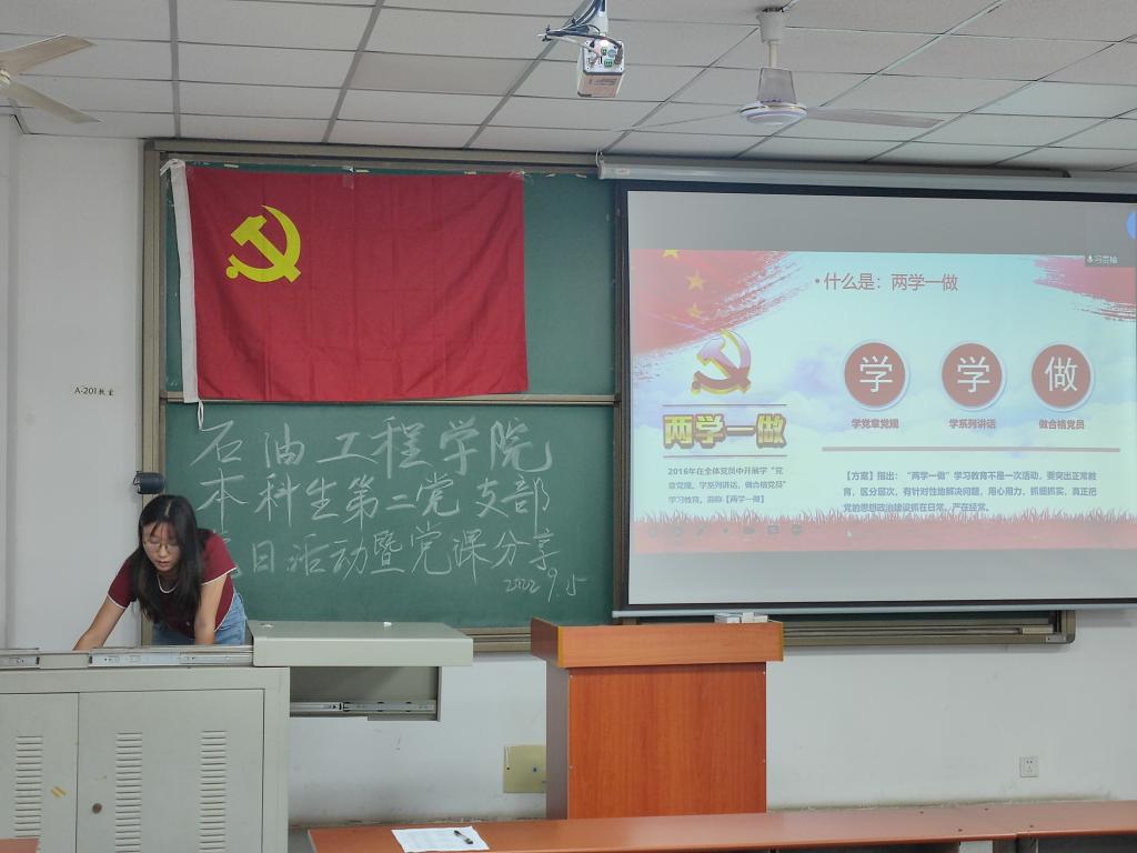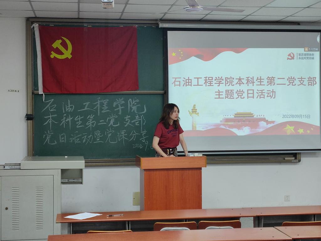 本科生第二党支部于A-201召开九月党日主题活动。本次会议由支部冯贯榆同志主持,支部31名本科生党员、党委副书记刘娥参会。