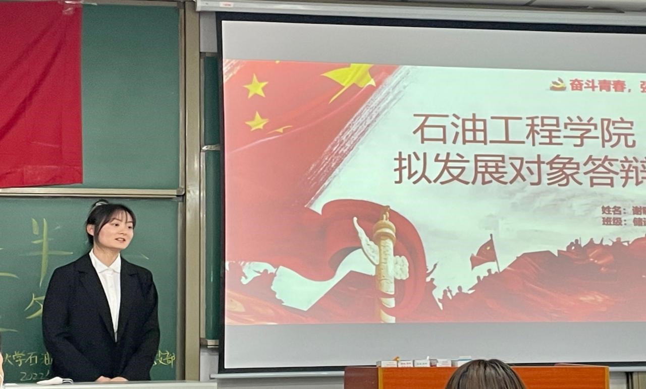 本次答辩会共分为两个部分,第一部分,个人演讲,第二部分,党性知识考察。魏嘉等十五名同志以“奋斗青春,强国有我”为主题进行了答辩,对个人情况、入党动机作出了阐释,结合“奋斗青春,强国有我”进行了深刻的自我剖析。于泽同志对拟发展对象进行了党性知识提问。