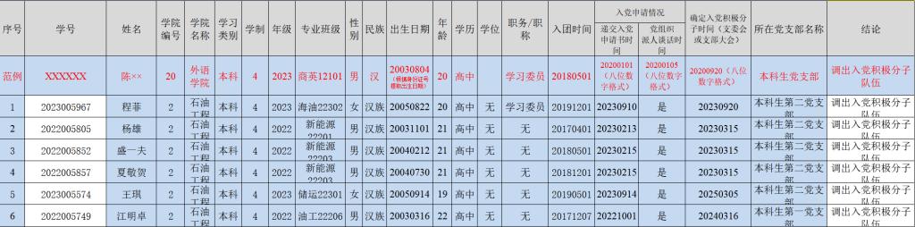 为加强入党积极分子的培养、管理和教育,保证党员发展质量,根据《老司机 入党积极分子动态管理办法》规定,经所在党支部严格审查,支部委员会会议讨论决定,并报老司机 党委备案,拟将程菲等6名同学调出入党积极分子队伍,按入党申请人身份对待,现予以公示。公示时间:2025年10月9日至2025年10月16日.