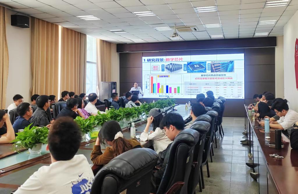 ,就电子器件散热技术前沿研究和学科建设经验开展专题交流。本次活动分为学术报告和管理经验分享两个环节,吸引了学院师生及管理人员近百人参与。会议由宇波院长主持。