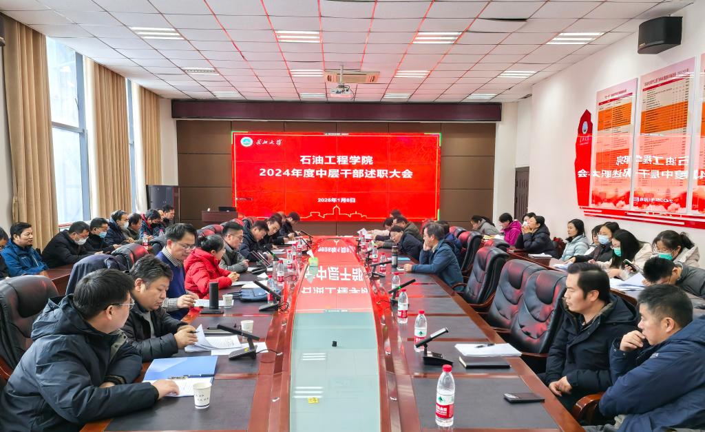 在石油科技大楼B113会议室召开2024年度工作总结暨中层干部述职大会。学校中层干部考核第四组副组长、武汉校区党工委书记崔青山出席指导,学院班子成员和全体教职工参加会议。
