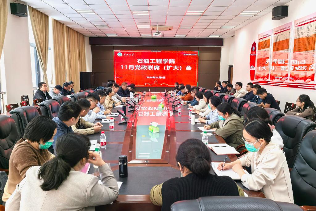 在石油科技大楼B113会议室召开了党政联席(扩大)会。班子成员、各系(中心、室)主任、副主任、党支部书记及全体行政管理人员参加,会议由院党委书记张伟主持。