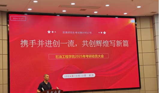 ,我院于10月15日在学术报告厅举办了考研再动员大会。学院常务副院长李忠慧、党委副书记张昊、班主任代表张光明出席了本次活动。