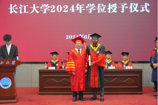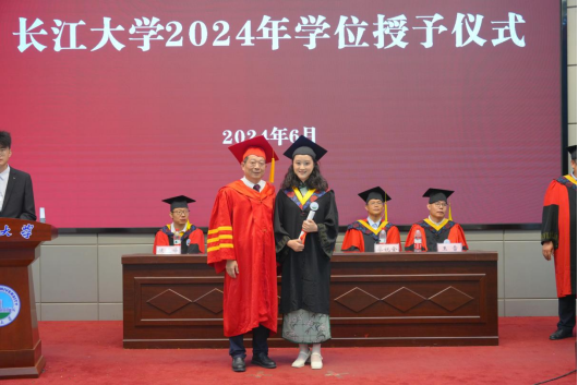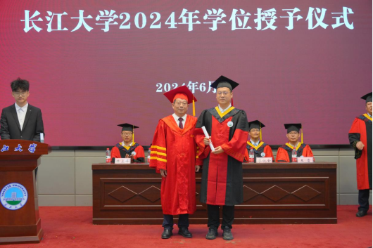 在激昂的乐声中,毕业生们身着崭新的学位服依次登上主席台,由副院长张顶学一一为同学们正衣冠,校党委常委、副校长江厚顺教授亲自为毕业生拨穗、授予学位证书、合影留念,并送上殷殷祝福。