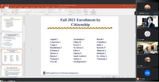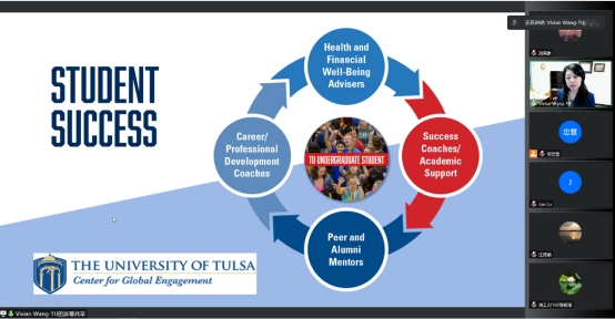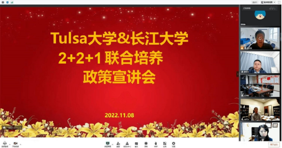 与美国Tulsa大学“2+2+1”联合培养项目线上宣讲会顺利举行,Tulsa大学全球事务副校长Vivian Wang、Jun Lu博士,我校国际交流与合作处处长曾亚军,老司机