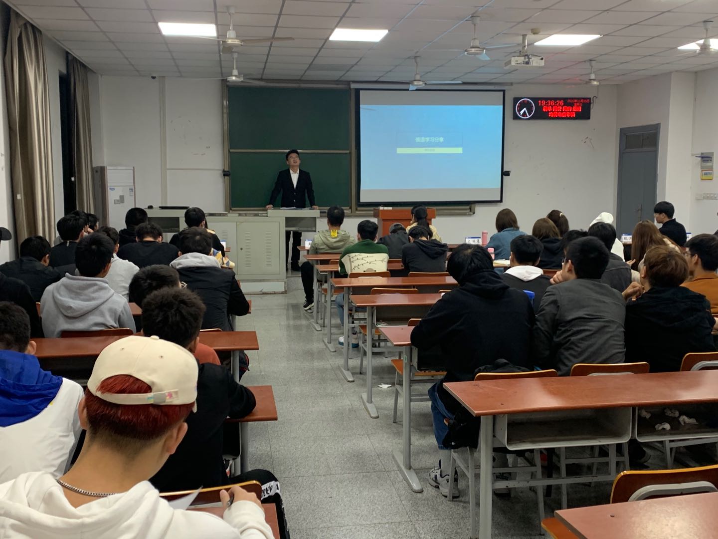 会议接下来请18级的4位同学黄盟、金铭、刘玉龙、魏江飞依次做了俄语学习方面的经验分享,4位同学的发言各有侧重、干货满满。黄盟同学主要从“初心”的主题,讲述了他从加入中俄班前的忐忑到加入中俄班后的遇到困难、回想初心、再次重燃信心的心态转变,引起了19级很多同学的共鸣;金铭同学和刘玉龙同学则从日常俄语学习中该注意的方式方法、经验体会给同学们做了介绍,为19级同学的日常学习提供了很好的建议;魏江飞同学主要介绍了俄语对外一级考试的实战应对方法,从俄语等级考试的“听、说、读、写”四个方面分别为同学们讲述了准备方法和应试技巧,让同学们收获满满。
