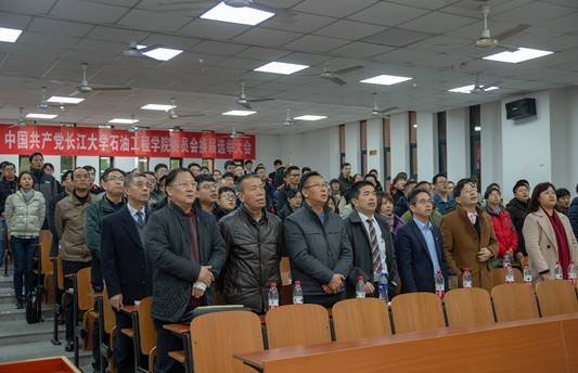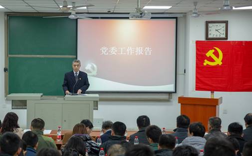 会场党旗庄严,气氛隆重,学院领导班子成员、教师党员、本科生党员、研究生党员参会。会议听取了党委工作报告,并投票选举出新一届党委成员,大会由院长江厚顺主持。