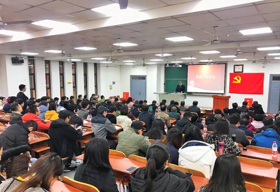 委员会换届选举大会在武教B103教室隆重举行,学院143名正式党员佩戴党员党徽庄严参会。