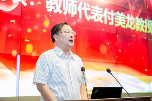 2019年“优秀共产党员”付美龙作为学院教师代表发言,勉励学生以“民族柱石、国脉钜工”的勇气和担当,共同创造学院更加美好的明天。大学生涯如何度过?他说:“大学最重要的就是要有规划,过好大学的‘三室一厅’——教室、寝室、图书室和学术报告厅。”他希望广大学生在四年的学习和历练之后,要具备大爱无疆、大任无怨、大智若愚、自律强大的优秀品质。