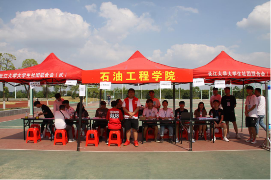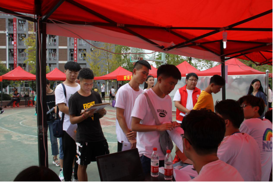 (武汉校区)篮球场上,新生们拿着身份证和录取通知书到达自己新生报到点,进行新生登记手续,经过身份信息核对、领取校园卡和宿舍卡等一系列标准化的报到流程,成为油院的新生力量。学生会同学每天从早上7点到晚上8点不间断值班,到9月5日下午五时,已有340人报到完毕,在大地和天空的见证下,正式成为老司机