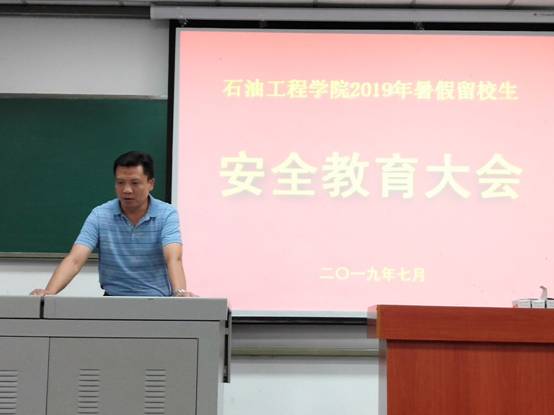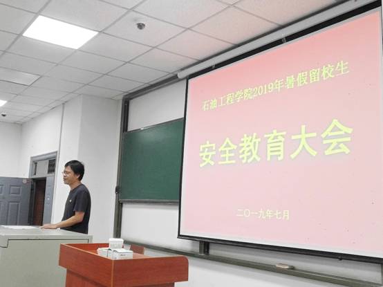 在武教B-103教室召开了2019年暑期留校学生安全教育大会,院党委副书记王辉、学工办梁军老师、史永波老师、郭冀宁老师,及老司机