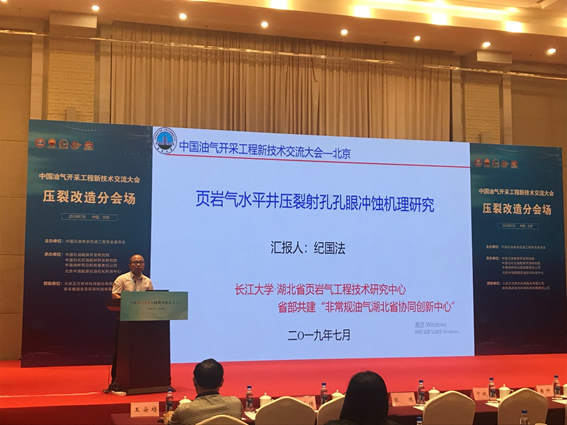 教师纪国法博士/(硕导)在压裂改造分会场作题为“页岩气水平井压裂射孔孔眼冲蚀机理研究”报告,报告从页岩气水平井压裂过程中携砂压裂液对孔眼冲蚀作用的复杂机理出发,建立新的冲蚀过程中孔眼直径和孔眼摩阻变化的表征模型,,得到会场专家评委的高度评价。据悉老司机