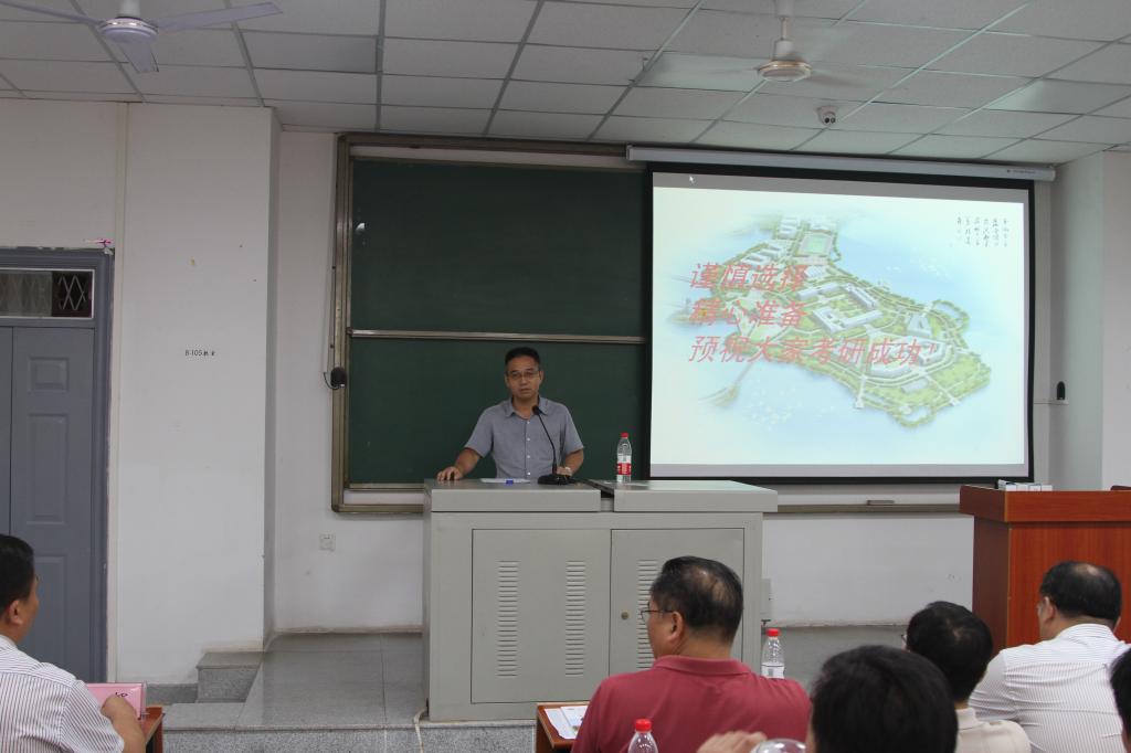 院长刘德华代表学院致欢迎辞,他从“选择考研的正确性、选择学校的合理性、选择坚持的重要性”三个方面进行了深入的讲述,并预祝大家考研成功。李忠慧副院长从老司机概况