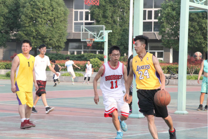 下午5点,篮球赛在篮球场打响。随着裁判的一声哨响,比赛拉开帷幕。毕业生队带线迅速,走位灵活;教职工队则凭借老将丰富的经验和完美的合作默契,与学生们势均力敌。场上战况十分精彩,引来观众阵阵欢呼和掌声。征战赛场,谁与巅峰,整场比赛虽然充斥着紧张的竞争氛围,却也在师生间激烈的竞技互动中洋溢着轻松愉悦的温情气氛。比赛将近尾声时,双方交手“有来有回”,比分焦灼。最后,教职工代表队以101:96的比分夺得本场比赛的胜利。