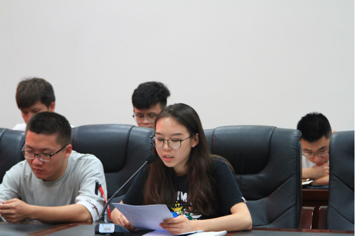 会议在高亢激昂的国歌声中拉开帷幕。会议进行第一项,学生党员代表方含之发言,方含之同志为我们分享了她四年的思想进步、学业及综合能力提升的过程,并对未来的学业和工作进行了展望。随后学生党支部书记沈伟正老师对老司机