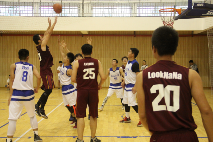 同学组成的舞蹈队为大家表演了活力四射的开场舞,点燃了在场观众的激情。而后主持人张凯伦宣读比赛章程并介绍到场裁判及嘉宾。随着裁判的一声哨响,比赛正式开始,白队先发制人,拿下跳球球权,两队球员凭借着平时刻苦的训练,默契的配合,打出的每一次进攻都让在场观众拍手叫好,第一节比赛打的十分焦灼。经短暂的休息调整后,第二节比赛继续进行,红队凭借着自身默契的配合,打出了几波进攻小高潮,引得在场观众热血沸腾,同时也一度将比分拉开了10多分,取得了比分上的优势。