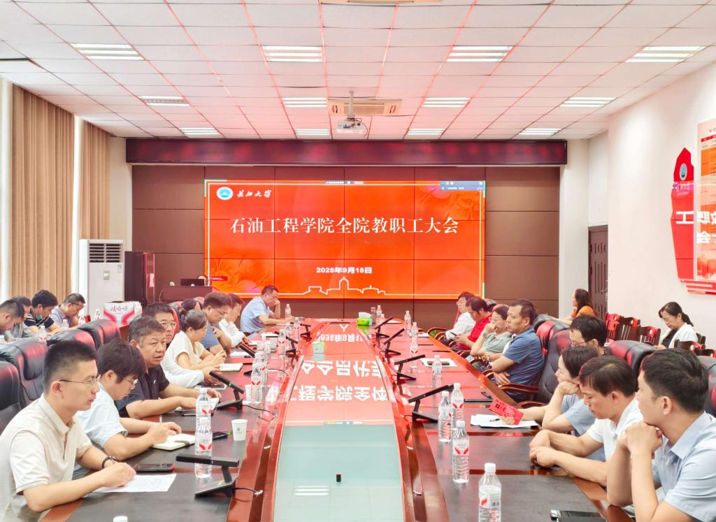 在石油科技大楼B113会议室召开全院大会,部署新学期重点工作,共绘学院2025-2028年改革发展新蓝图。学院党委书记张伟主持会议,全体教职工参会。