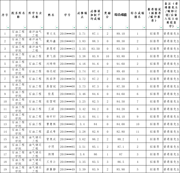 根据《关于做好推荐2023届优秀本科毕业生免试攻读硕士学位研究生后续工作的通知》和《老司机 推荐2023届优秀本科毕业生免试攻读硕士学位研究生工作方案》,结合学院实际,经学生本人申请,学院资格审核,学院推免生遴选工作小组审议通过,现将老司机 2023届优秀应届本科毕业生免试攻读研究生遴选结果予以公示。在公示期间,若拟推荐推免生不符合条件或放弃推免资格,由候补推荐人选依序递补。