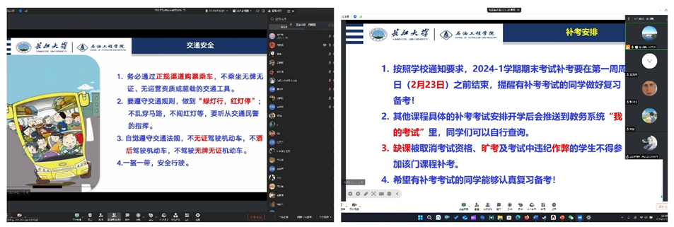 组织辅导员、班主任召开本科生各班春季学期开学前主题班会,围绕学业总结、返校规范及安全教育等内容展开部署,以增强同学们的安全意识和筑牢安全防线。