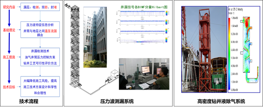 建立了一套高效快速定位井漏位置的压力波测试方法,实现无下井工具的地面快速、准确检测与漏失定位,降低井漏检测施工强度,消除井下测量诱发复杂风险无需停工单独测试,减少检测成本实时测试,提高检测时效性。提出了井筒热-流-固耦合的井壁稳定评价模型,为高温高压高应力地层钻井提供理论和技术支持;设计了一套高密度钻井液除气系统,提高除气效率,消除了高压气井钻井过程中的井控风险。